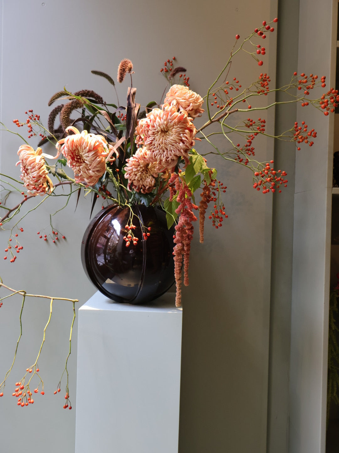 The VINCI Vase displays a round silhouette, accented by a belt-like band encircling its figure - a visual detail that metaphorically channels circular energy. Artisanally hand-molded in Portugal.