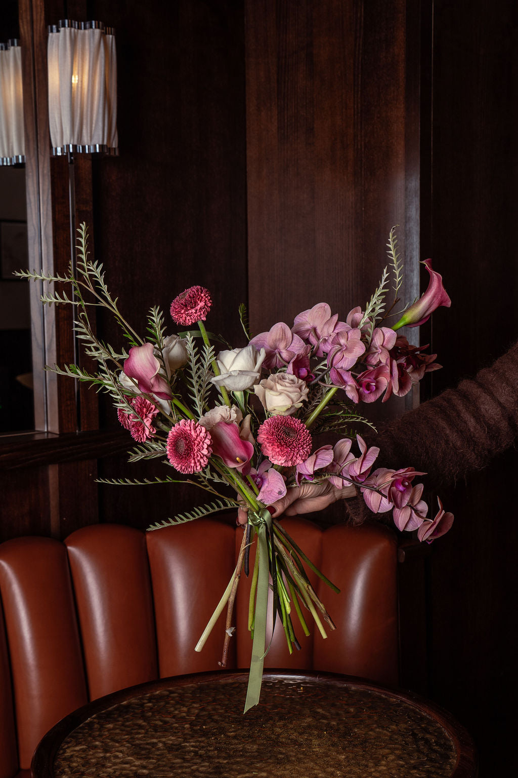 The palette moves between powdery pinks, muted mauves and warm neutrals — refined, intimate and deeply romantic. This bouquet speaks softly, but lingers long after.